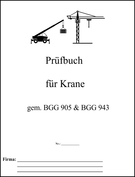 - Prüfung von Krananlagen vor der ersten Inbetriebnahme gemäß § 14 Abs.1 i.V. mit Anhang 3 BetrSichV und §25 Abs.1 DGUV Vorschrift 52.